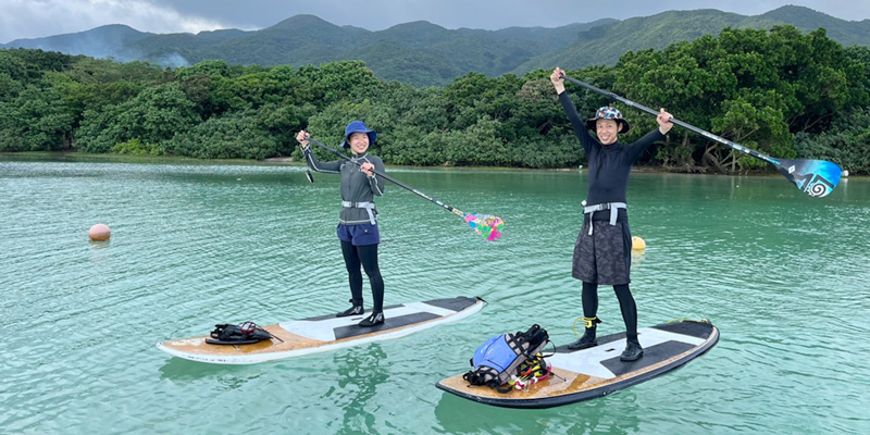 出発前には、SUPボードの取り扱い方、基本のパドリング等の講習をしますのでSUP初心者の方でもご参加いただけます。